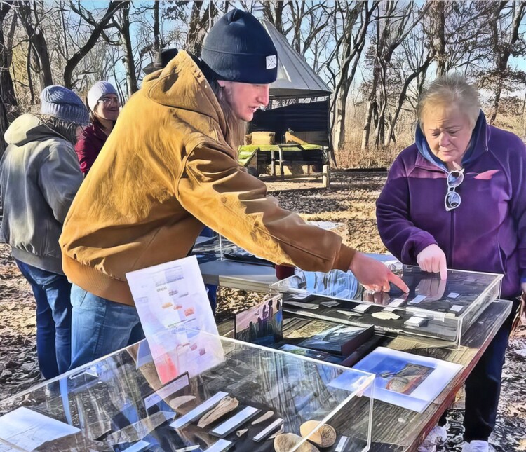 Calvin showing the displays to a nice lady.